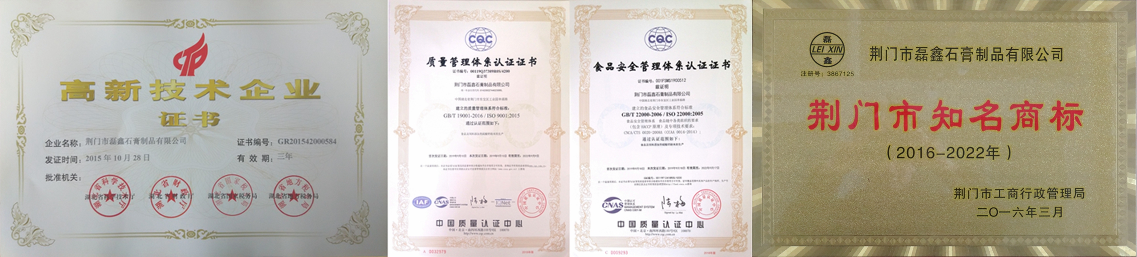 國家高新技術(shù)企業(yè)!湖北省專精特新中小企業(yè)!湖北省支柱產(chǎn)業(yè)細(xì)分領(lǐng)域隱形冠軍培育企業(yè)!湖北省守合同重信用企業(yè)!湖北省兩化融合示范企業(yè)!荊門市知名商標(biāo)!中國高純、高白、高亮、超細(xì)硫酸鈣(石膏)生產(chǎn)基地!中國取得《食品生產(chǎn)許可證》的食品添加劑硫酸鈣(石膏)供應(yīng)商!中國取得《飼料添加劑生產(chǎn)許可證》和《產(chǎn)品批準(zhǔn)文號》硫酸鈣供應(yīng)商!中國取得《出口飼料生產(chǎn)、加工、存放企業(yè)檢驗檢疫注冊登記證》飼料添加劑硫酸鈣供應(yīng)商!通過ISO9001國際質(zhì)量管理體系認(rèn)證!通過ISO22000國際食品安全管理體系認(rèn)證!通過HALAL國際清真認(rèn)證!通過KOSHER猶太認(rèn)證! 荊門市磊鑫石膏制品有限公司成立于2002年,位于石膏資源富集的湖北省荊門市東寶區(qū)工業(yè)園幸福路,占地27000余平方米,是一家在業(yè)內(nèi)享有盛譽(yù)的集石膏、石膏粉和硫酸鈣制品研發(fā)、生產(chǎn)、銷售于一體的高新技術(shù)企業(yè)。公司擁有 “磊鑫”、“杰普生”、“凱氏蘇特”等5個國家注冊商標(biāo),2個發(fā)明專利,18個實用新型專利,50余篇自有技術(shù)應(yīng)用研究,36篇權(quán)威期刊發(fā)表技術(shù)論文。主要產(chǎn)品有:醫(yī)藥級硫酸鈣、食品級硫酸鈣、飼料添加劑硫酸鈣、人造石透明填充粉,凱色粉、涂料及化妝品功能性填料和特級半水纖膏粉、混合石膏粉、模型石膏粉,建筑石膏粉等九大系列50余種產(chǎn)品。公司享有自營進(jìn)出口權(quán),客戶遍布全世界,是多家公司、集團(tuán)和世界500強(qiáng)企業(yè)的優(yōu)秀供應(yīng)商!產(chǎn)品遠(yuǎn)銷到韓國、日本、俄羅斯、中國臺灣、東南亞、歐美、中東、非洲等國家和地區(qū)。公司緊靠207國道,焦柳鐵路穿境而過,距漢江碼頭50公里,長江沙市港90公里。交通運(yùn)輸便利,確保及時供貨?!按脩魹樯系壅\信為本,視質(zhì)量為生命持之以恒!”是我們的企業(yè)宗旨,與我們合作是您明智的選擇,共謀發(fā)展是我們共同的目標(biāo)!歡迎垂詢,歡迎惠顧! Your Trusted Source For Food-Grade Calcium Sulfate!——做全球更好的食品級硫酸鈣(石膏)供應(yīng)商! ——CGC·磊鑫石膏